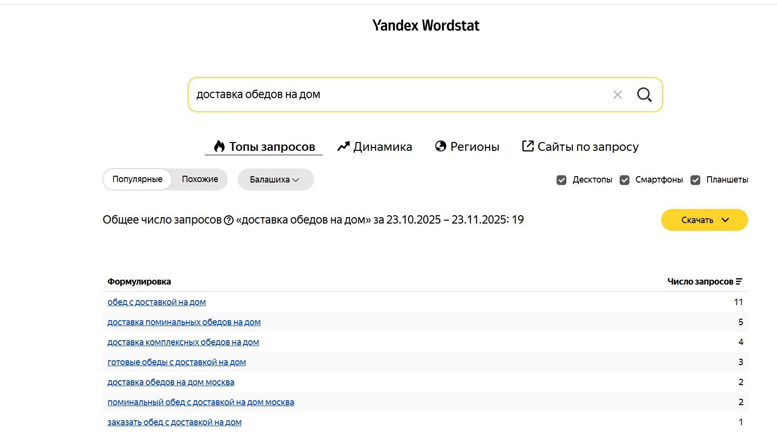 Открыли Яндекс.Wordstat и начал проверять запросы один за другим. Вот что получилось: