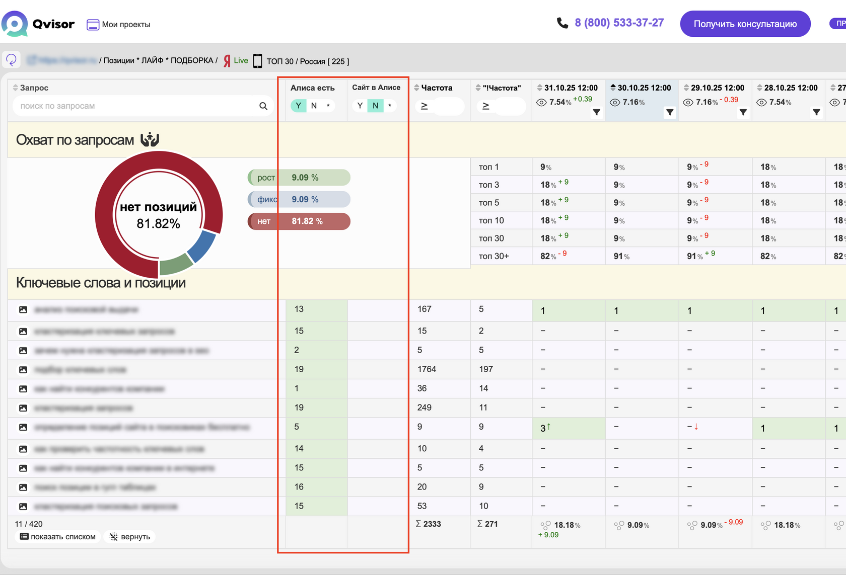 QVISOR: проверка попадания в выдачу Алисы с процентами