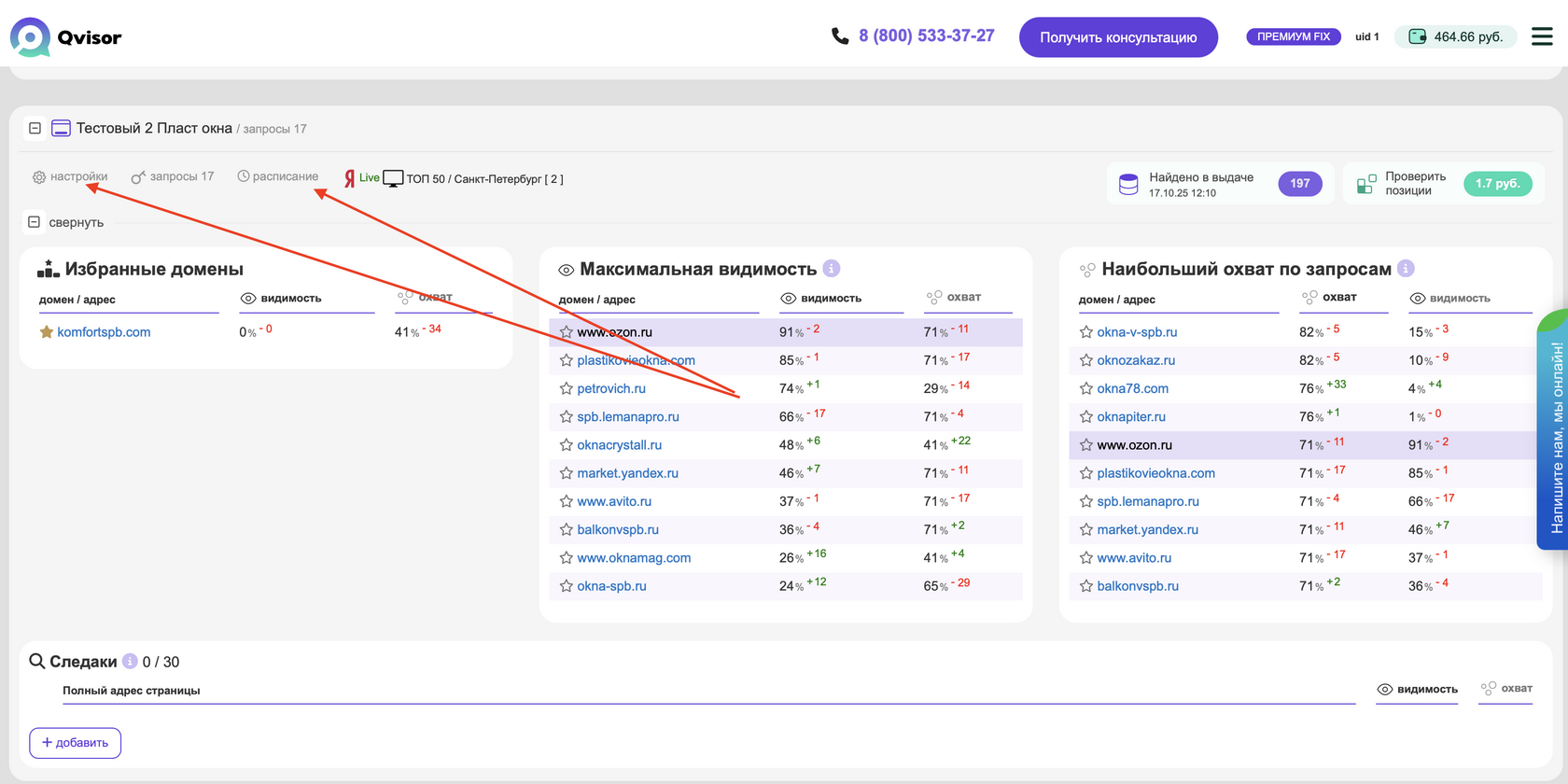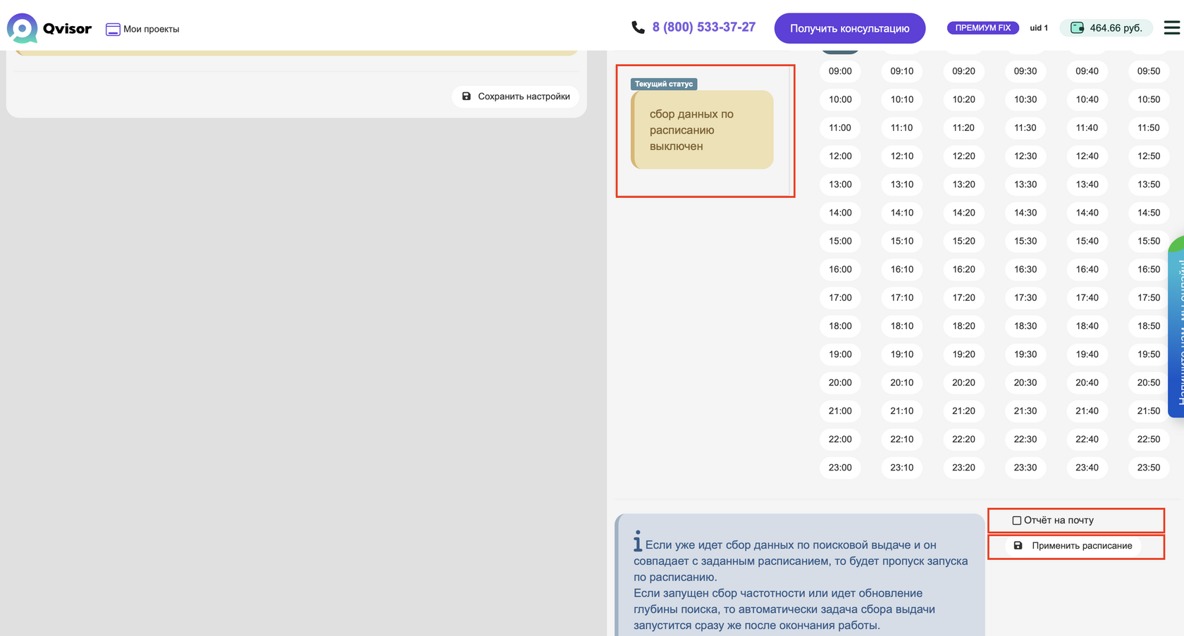 Проверка позиций сайта по расписанию